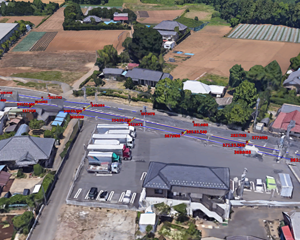 GPS測量機械のバージョンアップにより、公共座標で行った図面(現況、計画、平面図、縦横断図)がGoogle Earth 上で位置が確認できます。